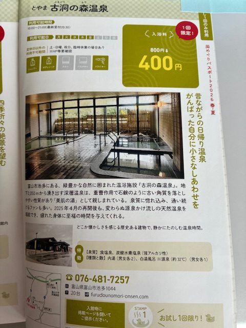 1回限りではありますが、お一人半額の400円で入浴いただけます(^^)/